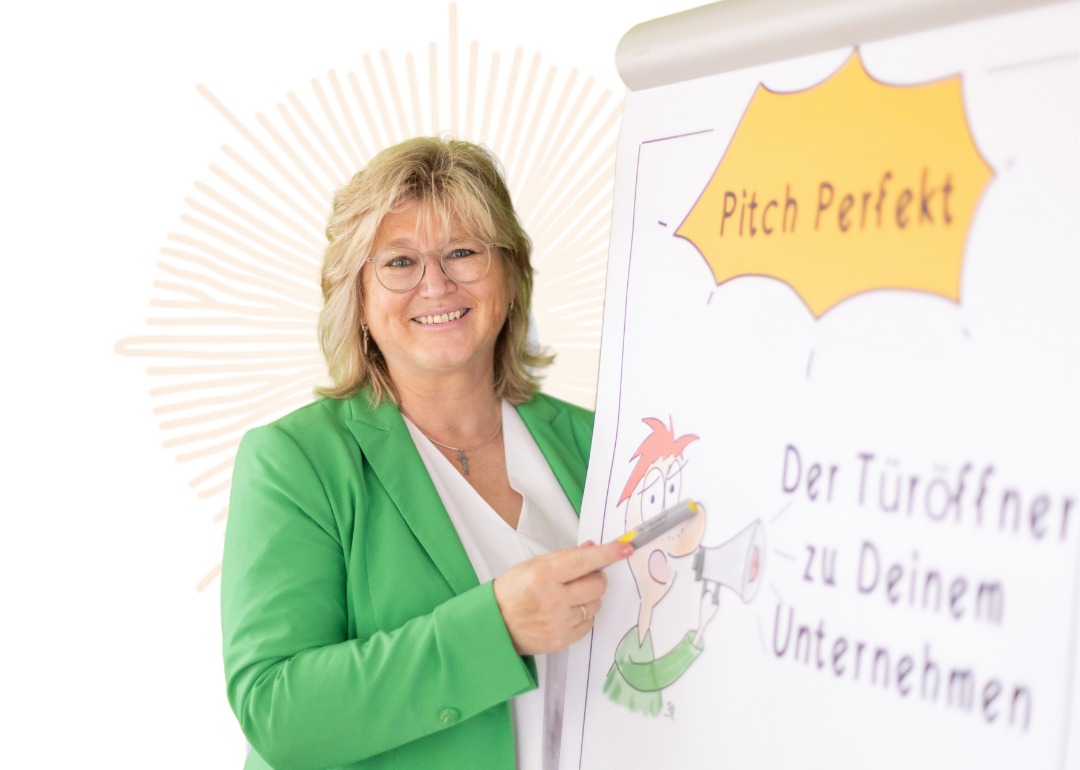 Nach diesen 100 Minuten hast Du einen klar strukturierten Pitch, den Du weiter nutzen, schärfen und in unterschiedlichen Situationen einsetzen kannst: online, offline, auf Messen oder im Netzwerk